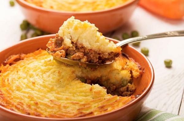 Valitse vähärasvainen naudanliha, mieluiten jauhettu, mutta jos sinulla on vain yksi pihvi, voit leikata sen hyvin pieniksi paloiksi. Lisää liha kattilaan, jossa on vettä, ja keitä. Pese ja kuori perunat; lisää sitten samaan kattilaan. Kun kaikki on kypsää, valuta ja murskaa perunat, kunnes muodostuu sose, lisää liha ja raejuusto, sekoita kaikki hyvin ja se on siinä!